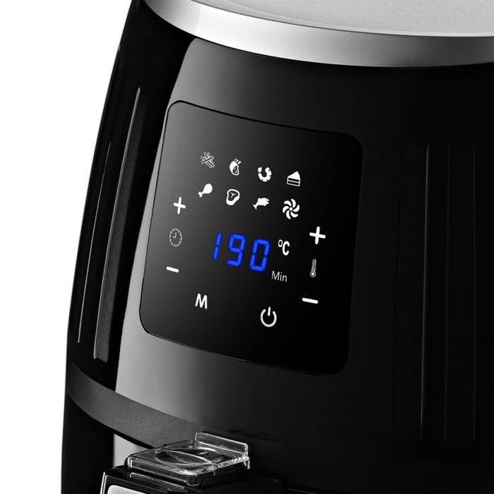 - Аэрогриль имеет 7 автоматических программ. А используя сенсорную панель управления, вы можете настроить нужный нагрев вручную от 80°C до 200°C , время приготовления от 1 до 60 минут. В инструкции представлены рецепты разнообразных блюд.
