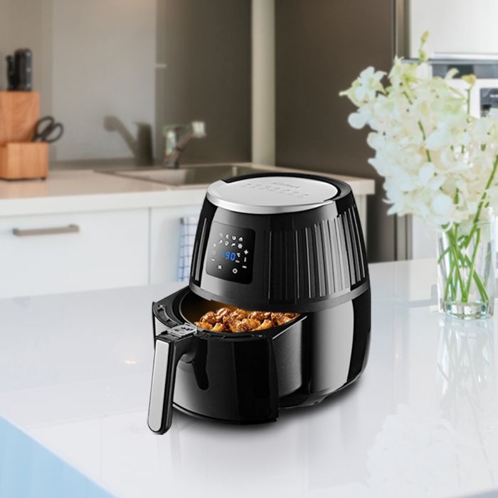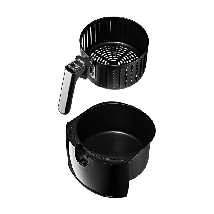 - Продукты готовятся в специальной корзине, которая вставлена в поддон. Благодаря системе циркуляции горячего воздуха, продукты обжариваются равномерно со всех сторон, получаясь нежными внутри и с хрустящей корочкой снаружи.