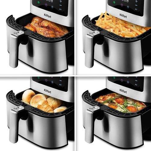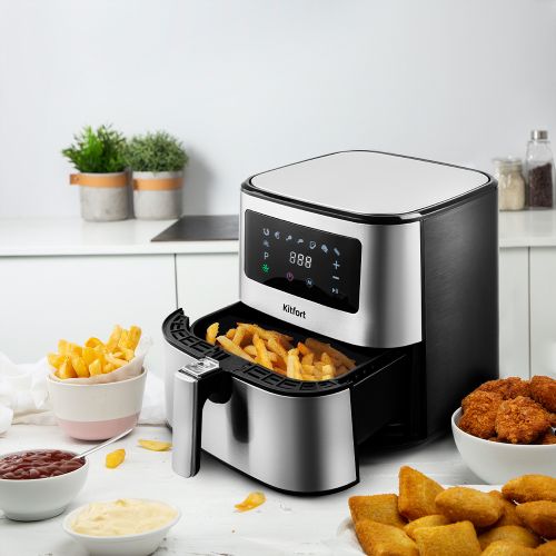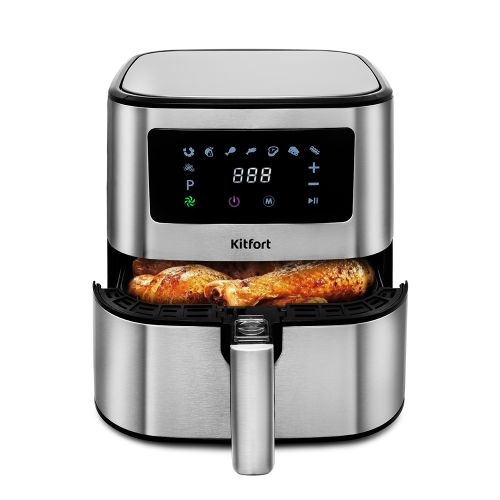 Аэрогриль с текстурированным корпусом Kitfort КТ-2228 может использоваться как аэрогриль, аэрофритюрница и духовка. Это позволяет готовить большинство продуктов с минимальным количеством масла или вовсе без его добавления.