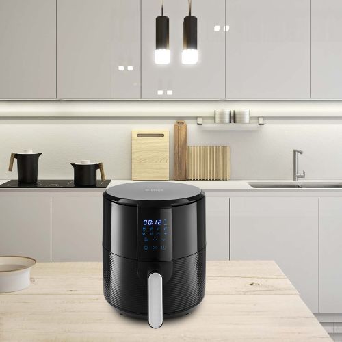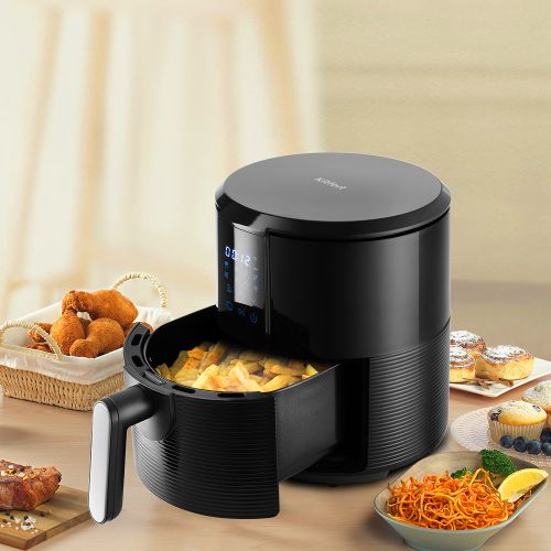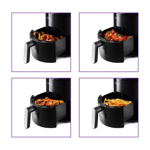 Аэрогриль оснащён сенсорным управлением, имеет 8 автоматических программ и программу с ручными настройками. Таймер можно устанавливать до 60 мин. Температура регулируется от 80 до 200°C. Прибор автоматически отключится по окончании установленного времени.