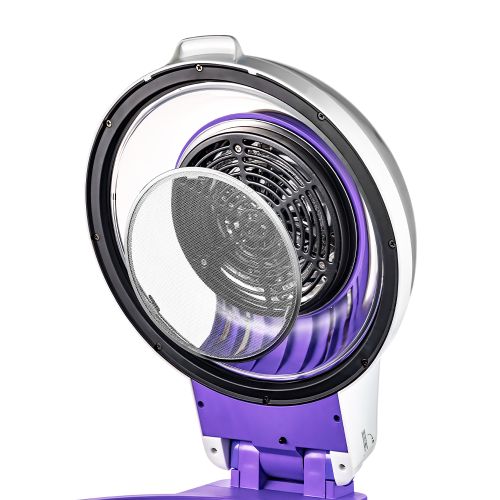 - Вентилятор, расположенный в верхней части аэрогриля, обеспечивает циркуляцию горячего воздуха от нагревателя внутри рабочей ёмкости. Тем самым, продукты равномерно обжариваются со всех сторон, получаются нежными внутри и с хрустящей корочкой снаружи.