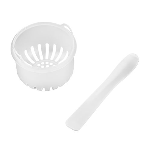 Корзинка съёмная, её удобно хранить как внутри пароварки, так и отдельно. В комплекте идёт лопатка, которой удобно перемешивать пюре или удалять кусочки ингредиентов со стенок чаши.