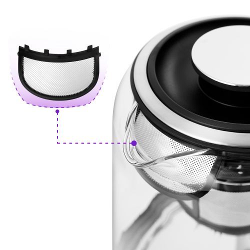 - Съёмные крышка и чаезаварник, а также большое горлышко чайника облегчают доступ внутрь при его мойке и во время удаления накипи. А форма носика позволяет метко наливать воду независимо от количества воды в чайнике.
