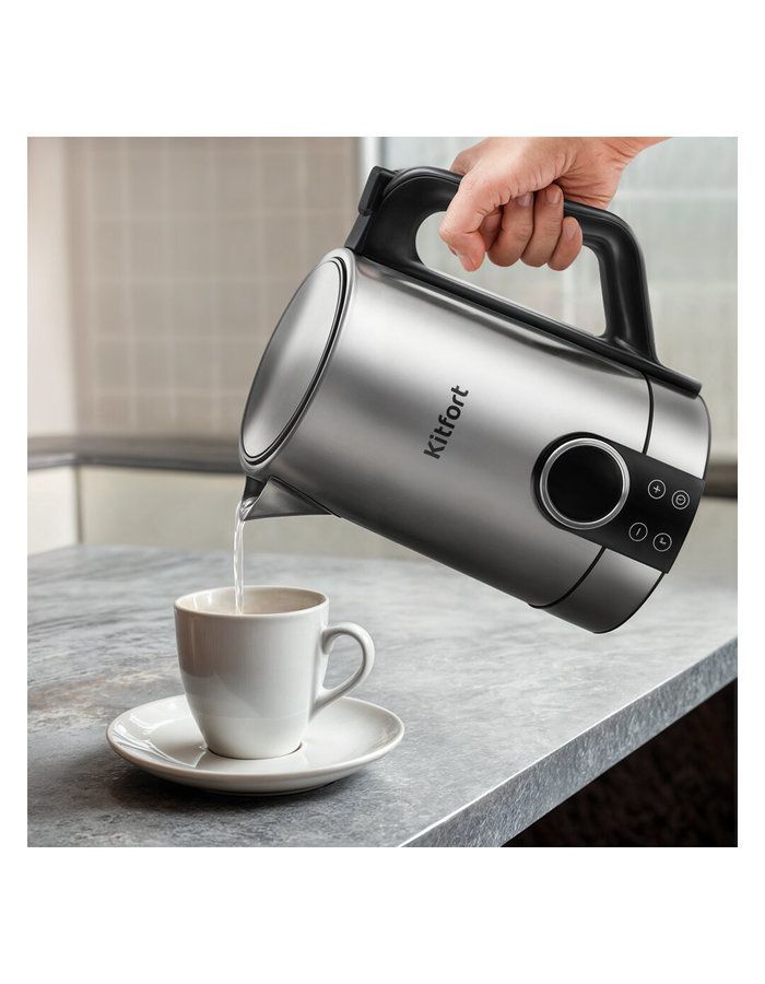 Чайник Kitfort КТ-6660 предназначен для кипячения воды дома, в офисе, на даче. Полный чайник закипает примерно за 5 минут. Чайник оснащён функцией поддержания температуры в течение 2 часов. Температура воды контролируется встроенным термодатчиком. Мощность 1850-2200 Вт.