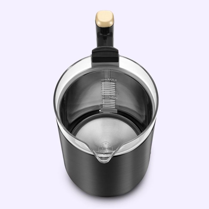 - Внешняя часть чайника выполнена из нержавеющей стали. Внутренняя поверхность – из стекла и нержавеющей стали. Крышка чайника полностью съёмная, что удобно для чистки чайника от накипи.