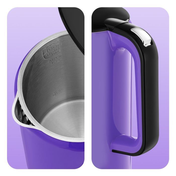У чайника двойные стенки, благодаря чему вода будет дольше оставаться горячей. Также двойные стенки защищают от ожогов, т.к. почти не нагреваются снаружи. Корпус чайника выполнен из пластика, а внутренняя поверхность из нержавеющей стали.