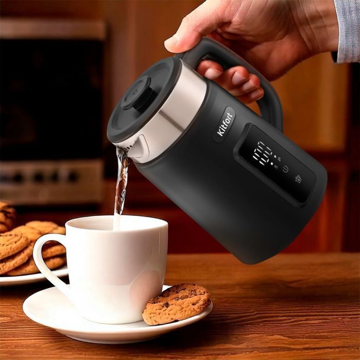 - С помощью LED-дисплея и панели управления на корпусе удобно настраивать заданную температуру с помощью 1 кнопки. Чайник также оснащён функцией поддержания температуры в течение 2 часов, чтобы в любой момент у вас была горячая вода для напитка.
