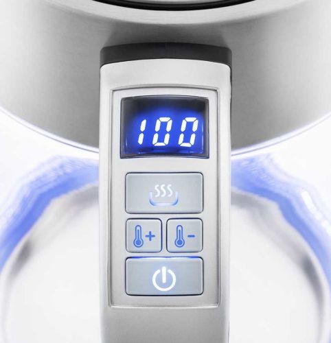 | Описание | Может вскипятить воду или нагреть её до температуры от 40 до 100 °С с шагом в 5 °С, что удобно при заваривании различных сортов чая, приготовлении кофе и подогреве детского питания. На ручке находится LED-дисплей, кнопки включения, поддержания и регулировки температуры. |