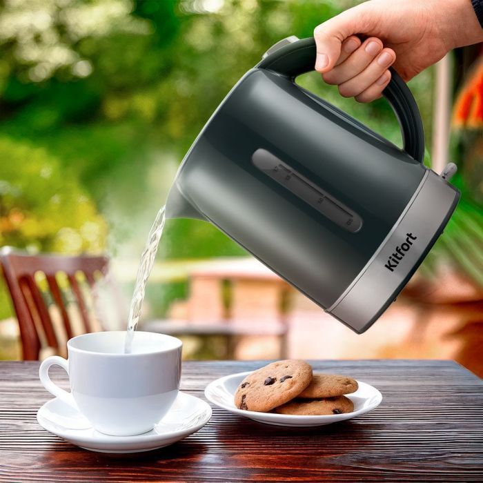 Электрический чайник Kitfort KT-8704 предназначен для быстрого кипячения воды дома, в офисе или на даче. Простой дизайн не будет создавать визуального шума и отлично впишется в пространство в спокойных оттенках.Мощность 1850-2200 Вт.