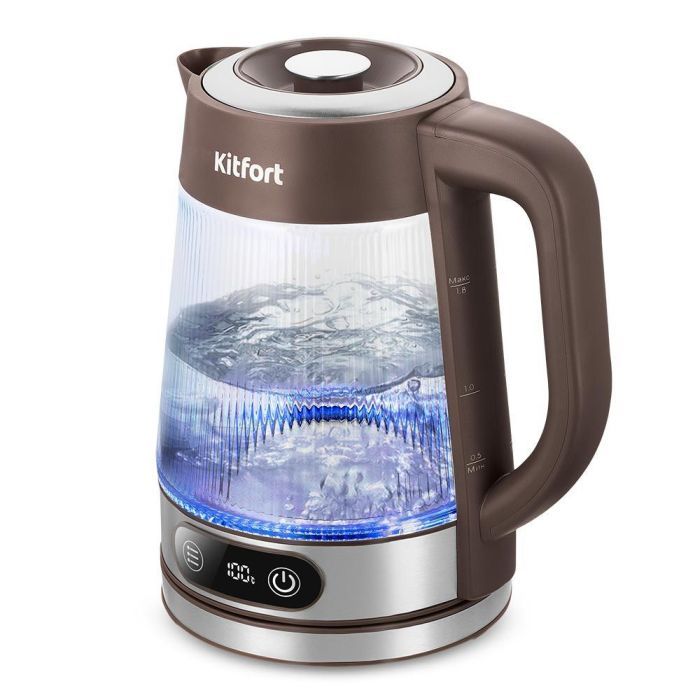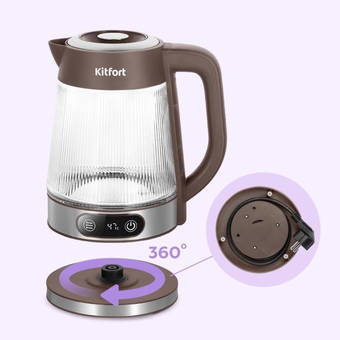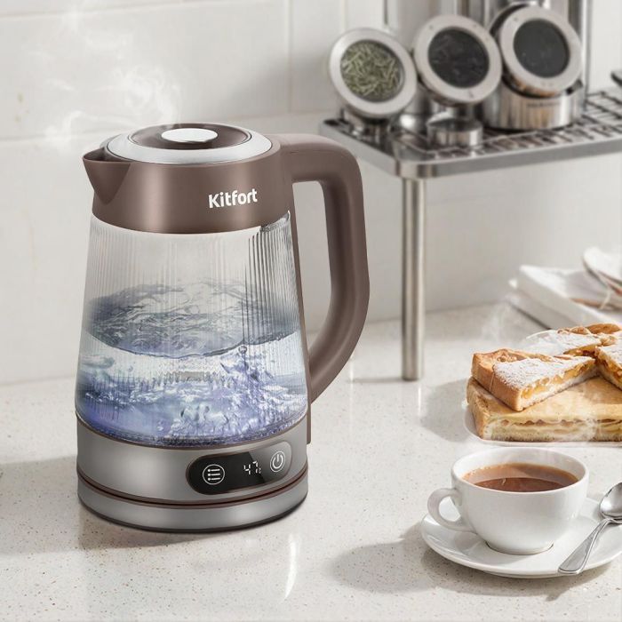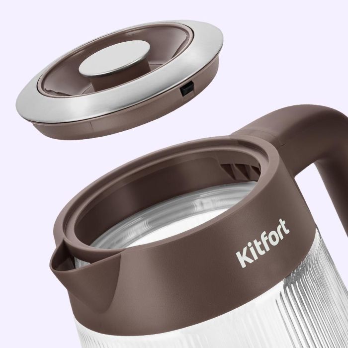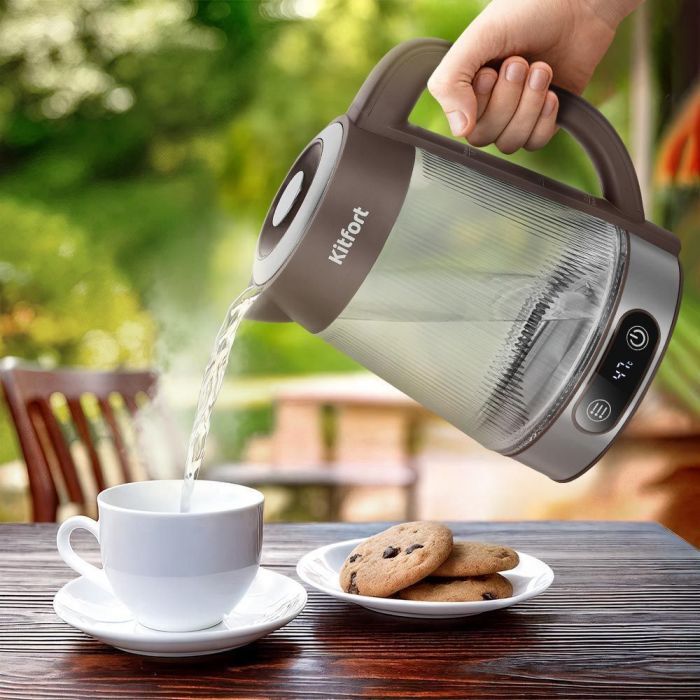 Электрический чайник Kitfort КТ-8710 может не только вскипятить воду, но и нагреть её от 40 до 90 °C с шагом 10 °C, что очень удобно при заваривании различных сортов чая. Температура воды контролируется встроенным термодатчиком. Мощность 1850-2200 Вт. Ёмкость 1,8 л.
