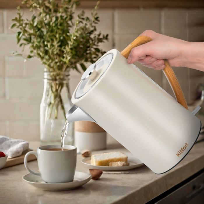 Электрический чайник Kitfort КТ-8715 предназначен для кипячения воды дома, в офисе, на даче. Чайник автоматически отключается при закипании, имеет защиту от перегрева и от включения без воды. Ручка чайника удобно лежит в руке и не нагревается. Мощность 1850–2200 Вт. Ёмкость 1,7 л.