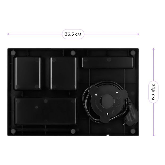 - Подставка имеет эргономичный корпус оптимального размера. Также, под местом расположения чайника, расположен отсек для хранения шнура, что позволит смотать лишние провода при использовании или убрать его вовсе при необходимости.