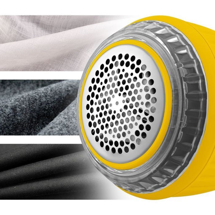 - Очиститель катышков КТ-4092 можно использовать для ухода за любыми тканями из хлопка, шерсти или льна. Принцип работы прибора схож с электробритвой – защищённый металлической сеточкой блок ножей срезает комки ворса с поверхности ткани.