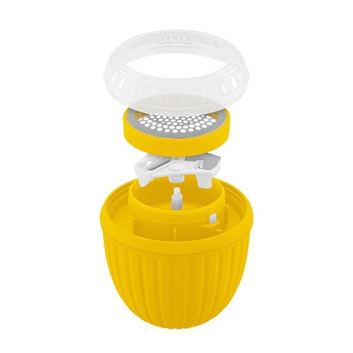 - Комки ворса попадают в контейнер, который нужно периодически очищать. Перед чисткой необходимо выключить прибор, открутить контейнер для сбора катышков и высыпать содержимое прибора. Также контейнер можно помыть водой.