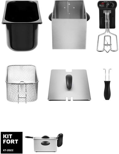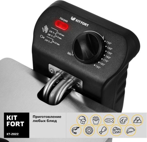 | Особенности | Полностью разборная конструкция. Температура приготовления от 130 до 190 градусов. Холодная зона дольше сохраняет масло чистым. Приготовление любых блюд. Емкость чаши: 5,8л. Объем корзины: 1л. |