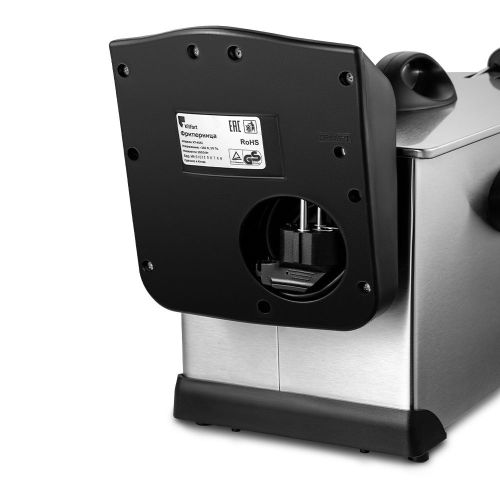 - Фритюрница имеет отсек для хранения шнура питания на задней части блока управления с нагревателем.