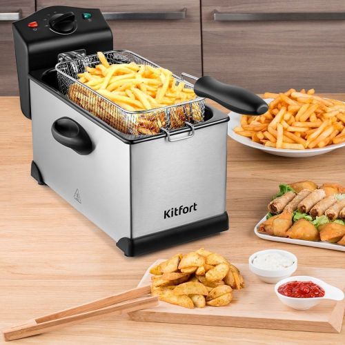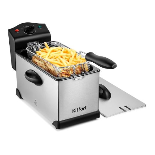 Продукты во фритюрнице Kitfort КТ-4051 готовятся быстрее, чем на сковороде из-за короткого воздействия высокой температуры со всех сторон. Хорошо зажаренные во фритюре продукты покрыты хрустящей корочкой, под которой почти нет масла.
