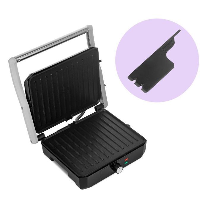- Антипригарное покрытие позволяет готовить с минимальным количеством масла или без него. Лопатка для очистки панелей из комплекта поможет вам легко удалить остатки масла и жира с панелей после приготовления.