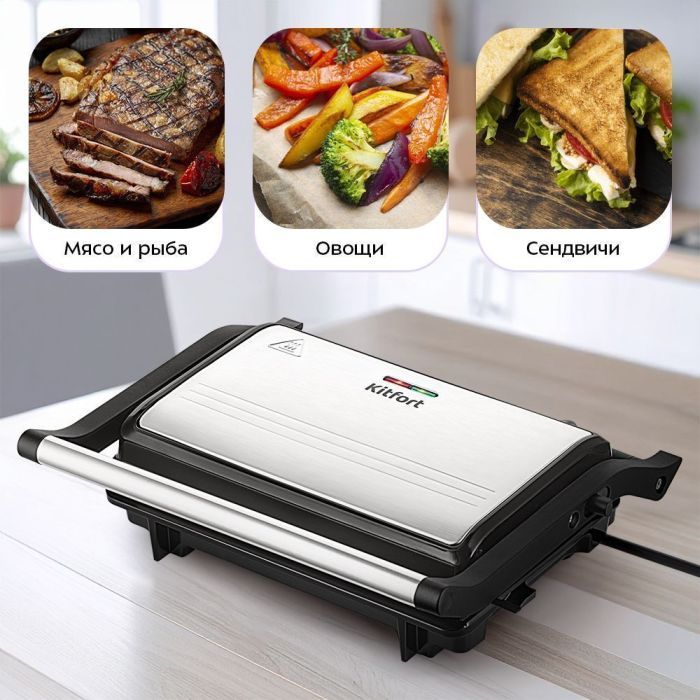 - Готовьте быстро и вкусно с электрогрилем Kitfort КТ-4602! Представьте: сочные стейки, хрустящие овощи и аппетитные сэндвичи – всё это вы сможете приготовить с легкостью, не выходя из дома.