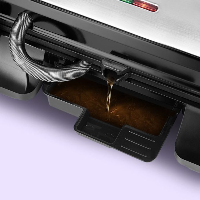 - Одним из преимуществ электрогриля КТ-4602 является съёмный поддон для сбора жира и сока, которые образуются во время готовки. Это не только упрощает процесс приготовления, но и помогает поддерживать чистоту на кухне.