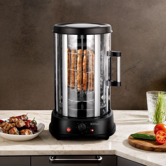- Украсьте вашу кухню электрошашлычницей и весёлыми разговорами за вкусным обедом! Данная модель КТ-1411 не займёт много места и легко впишется в интерьер благодаря минималистичному дизайну и вертикальной конструкции!