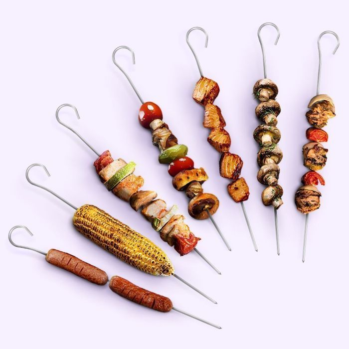 - В комплекте к шашлычнице КТ-1411 идут 7 шампуров. Помимо шашлыка из мяса, рыбы или овощей, приготовьте также шаверму, люля-кебаб, сардельки, кукурузу-гриль, картошку или гренки!