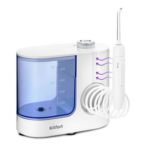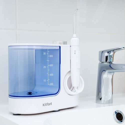 Ирригатор Kitfort КТ-2914 — это прибор для ухода за полостью рта. Он очень прост в использовании: налейте воду (или специальный раствор для полоскания зубов) в резервуар, выберите подходящий вам режим и начинайте очистку. После еды остатки пищи застревают между зубами, забиваются в карманы десен. В таких случаях на помощь может прийти зубная нить или флоссер. Ирригатор может частично заменить зубную нить или флоссер. Тонкая и сильная струя воды вымывает остатки еды и налет из межзубного пространства и десневых карманов. Струя воды не только очищает труднодоступные места, но и тщательно массирует десны, что является хорошей профилактикой заболевания десен. Модель Kitfort KT-2914 является стационарным ирригатором, он предназначен для использования дома всеми членами семьи. У ирригатора есть вместительный резервуар для воды емкостью 1000 мл. У ирригатора сверху на корпусе есть кнопка включения, которая также является регулятором потока. Прибор автоматически отключается после 2 минут использования. В комплекте к ирригатору идут 6 насадок: 2 классические струйные насадки, насадка для удаления зубного камня и налета из-под линии десны, насадка для ортодонтических конструкций, насадка с щеточкой для удаления налета, насадка для чистки языка. Для хранения наиболее используемых насадок предусмотрен специальный отсек, который встроен в корпус сбоку и закрывается дверцей. На держателе насадок есть поворотный механизм, с помощью которого установленная насадка крутится на 360º. С помощью кнопки/слайдера на держателе насадок можно остановить подачу воды в любой момент, не выключая сам ирригатор. С профилактическими целями ирригатор нужен каждому взрослому человеку. Ирригатор не заменяет собой зубную щетку, он является частью комплексного ухода за полостью рта. Комплексный уход для вас должен подобрать ваш лечащий врач-стоматолог.