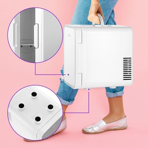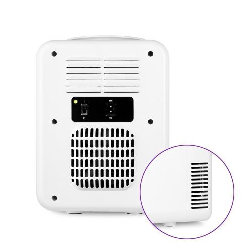 - У холодильника для косметики есть сзади и по бокам вентиляционные отверстия, которые обеспечивают циркуляцию воздуха и отвод тёплого воздуха от модуля Пельтье, охлаждающего холодильную камеру. Кнопка включения и разъём располагается сзади.