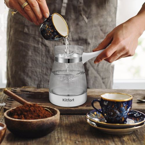 Электрическая турка КТ-7132 варит кофе по-турецки. С ней вы сможете быстро и легко сварить натуральный кофе на 7 чашек по 60 мл. Устройство состоит из базы и турки.
