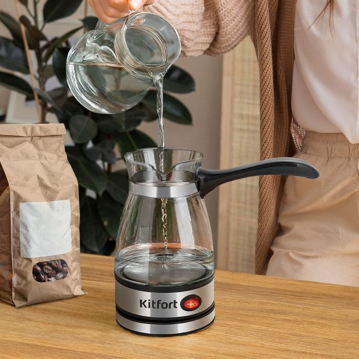 Электрическая турка КТ-7489 варит кофе по-турецки. С ней вы сможете быстро и легко сварить натуральный кофе на 7 чашек по 70 мл. Устройство состоит из базы и турки. Мощность 650 Вт Ёмкость 500 мл.