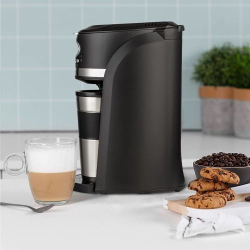 Термокружка выполнена из пластика и нержавеющей стали с силиконовой вставкой, которая не дает вам обжечься. Крышка термокружки позволяет пить кофе на ходу, благодаря удобной форме отверстия для питья, которое можно закрывать.