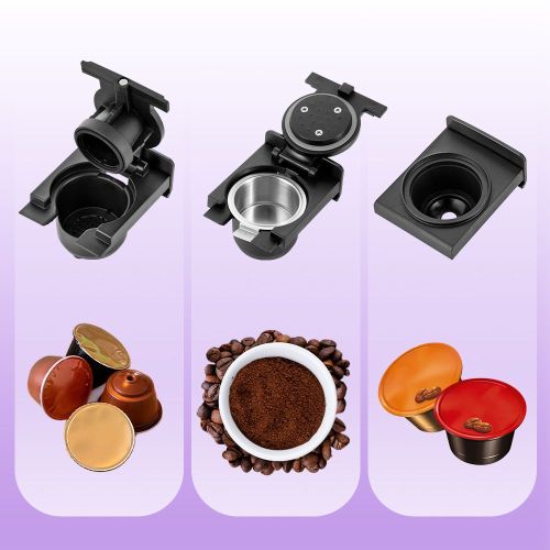 - Благодаря адаптерам кофеварка подходит для капсул типа Nespresso Original и Dolce Gusto, а также для молотого кофе. Кофе в капсулах может долго храниться благодаря герметичной упаковке.