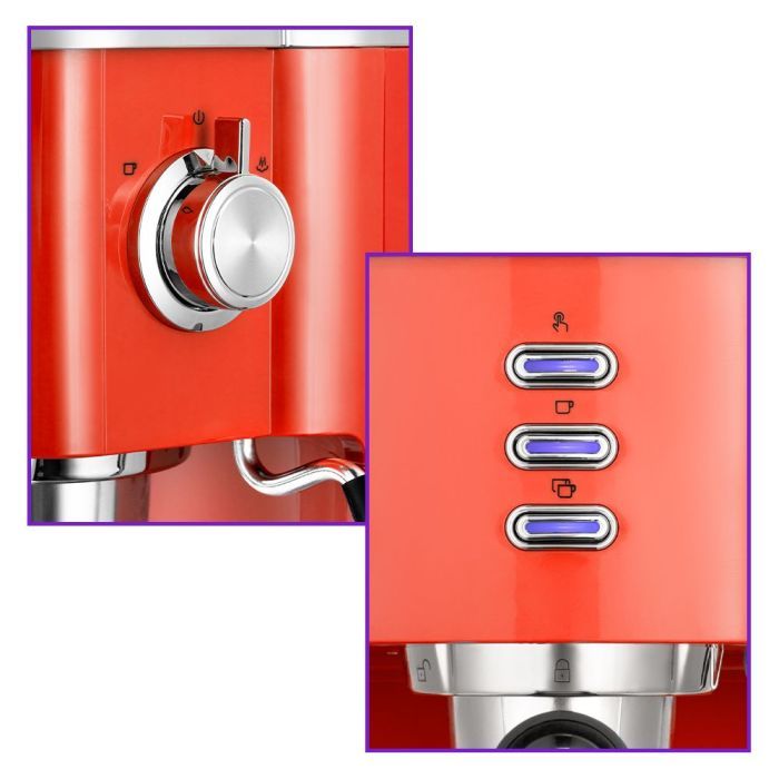 - У регулятора всего три положения: крайнее левое, среднее и крайнее правое. Кроме того, кофеварка управляется тремя кнопками: «Ручной режим», «Эспрессо» и «Двойной эспрессо». У каждой кнопки есть световой индикатор.