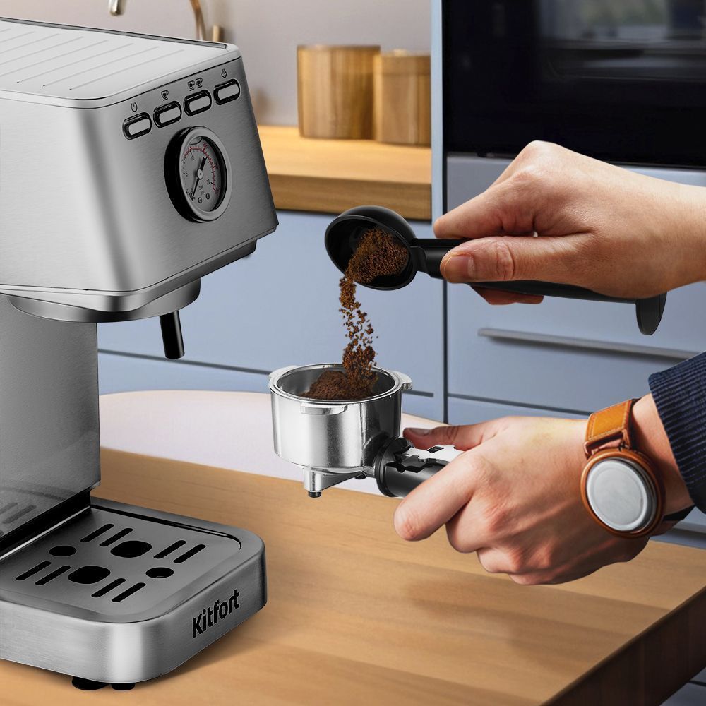 Кофеварка КТ-7254 поможет приготовить кофе эспрессо, капучино или латте, а также множество других видов кофе на ваш вкус. С помощью стимера вы можете приготовить молочную пенку, а также подогреть паром остывший чай или молоко.
