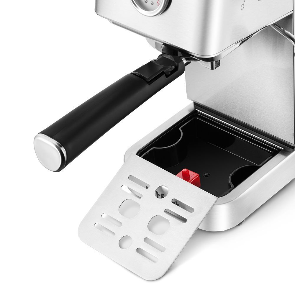 - Мерная ложка-темпер, которая идёт в комплекте, служит для того, чтобы удобно насыпать молотый кофе. Обратная сторона поможет утрамбовать кофейную таблетку. В комплекте идёт одинарный, а также фильтр для двойного эспрессо, если хотите более крепкий кофе.