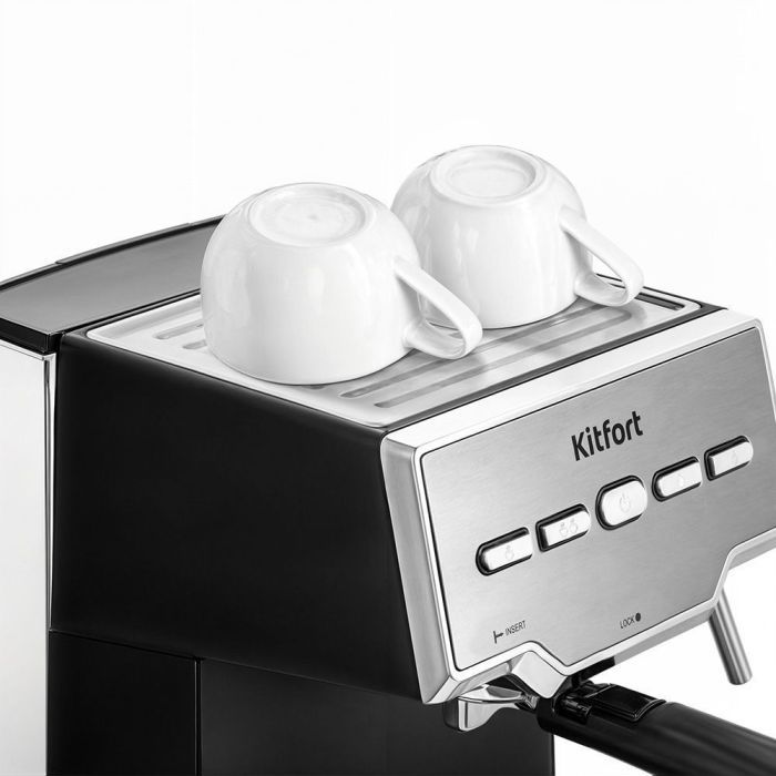 - Съёмный резервуар для воды съемный — его можно легко снять и наполнить водой в любом удобном месте. Также можно заливать воду в резервуар, не снимая его. Ёмкость – 1,6 литров, кофе точно хватит на всю семью!