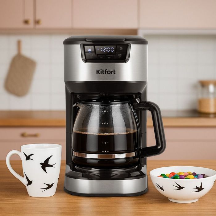 - Капельная кофеварка Кіtfort КТ-7539 готовит ароматный кофе! Прибор компактный и не займёт много места на вашей кухне. Кофеварка оснащена системой автоподогрева, что позволяет поддерживать идеальную температуру напитка после заваривания.