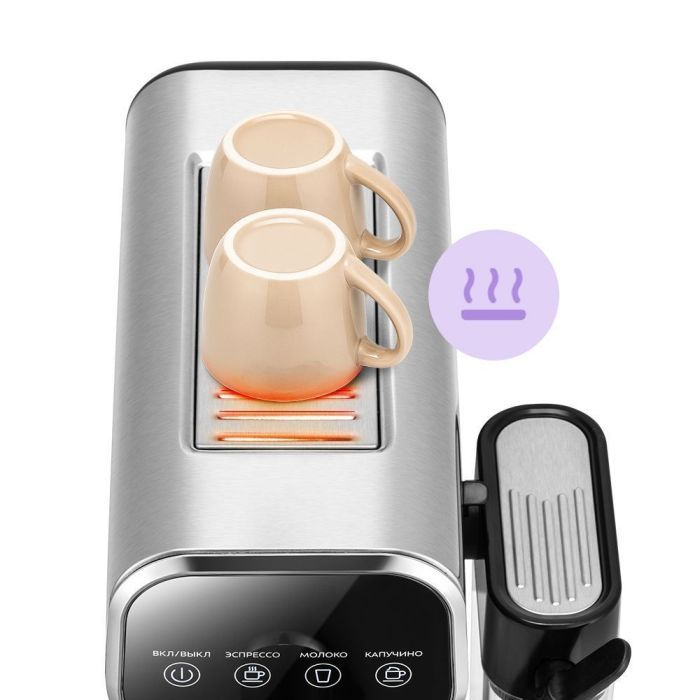- Платформа для подогрева не имеет собственного нагревательного элемента, она нагревается от бойлера. На платформу для подогрева кладут рожок, фильтр и чашки, чтобы прогреть их перед приготовлением эспрессо, а также чтобы они быстрее просохли.