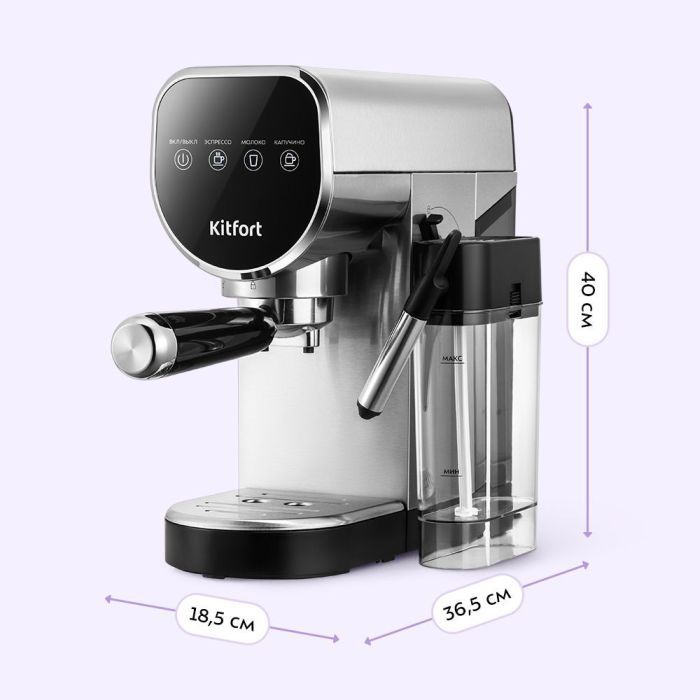 - Идеальный выбор для тех, кто ищет компактную и мощную кофемашину. Её размеры позволят разместить КТ-7692 даже на небольшой кухне. Наслаждайтесь любимым напитком в любой момент!