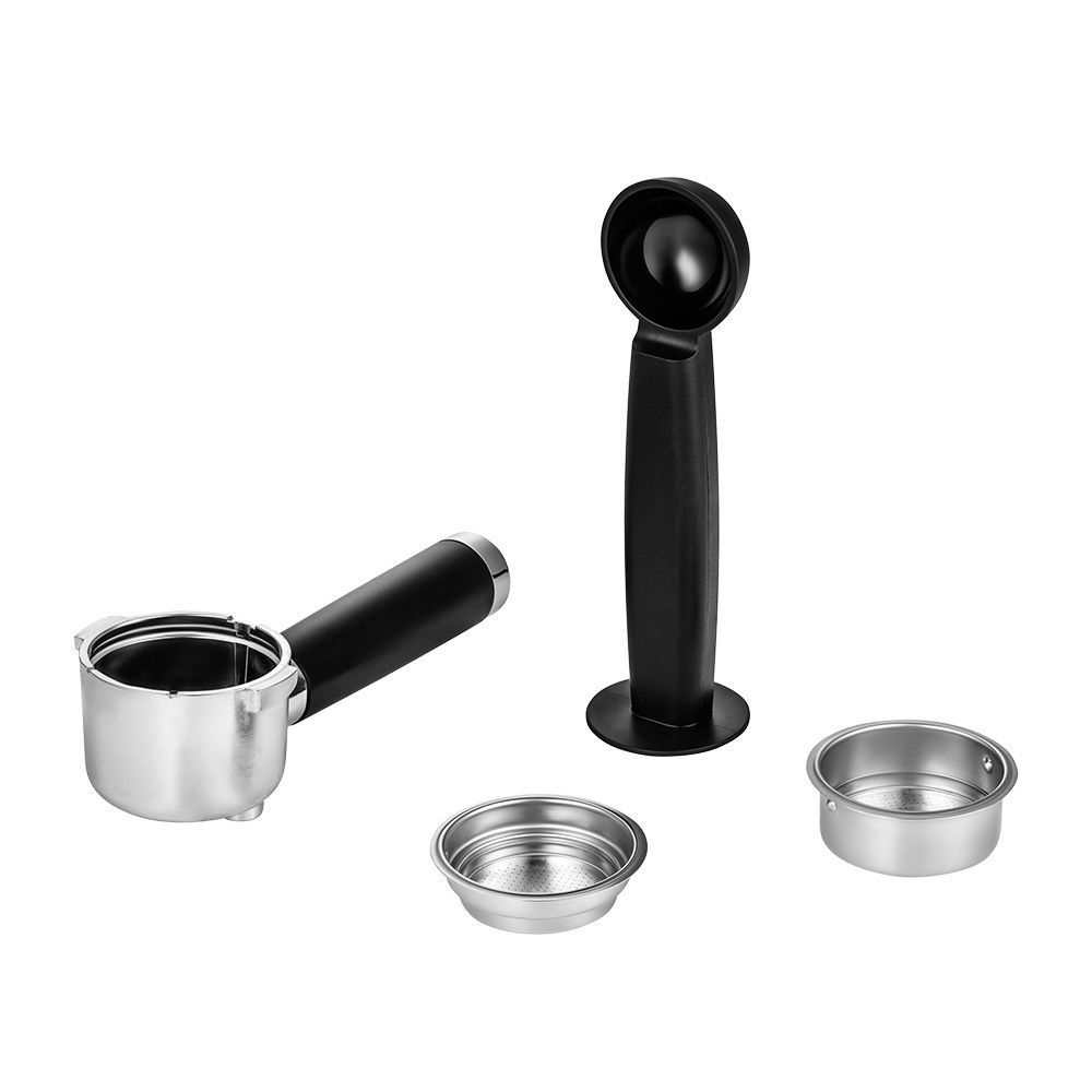 - Мерная ложка-темпер поможет наполнить рожок и утрамбовать в нем кофейную таблетку. Металлические фильтры для одной и двойной порции эспрессо с лазерным нанесением отверстий долговечны и не требуют использования каких-либо расходующихся частей.