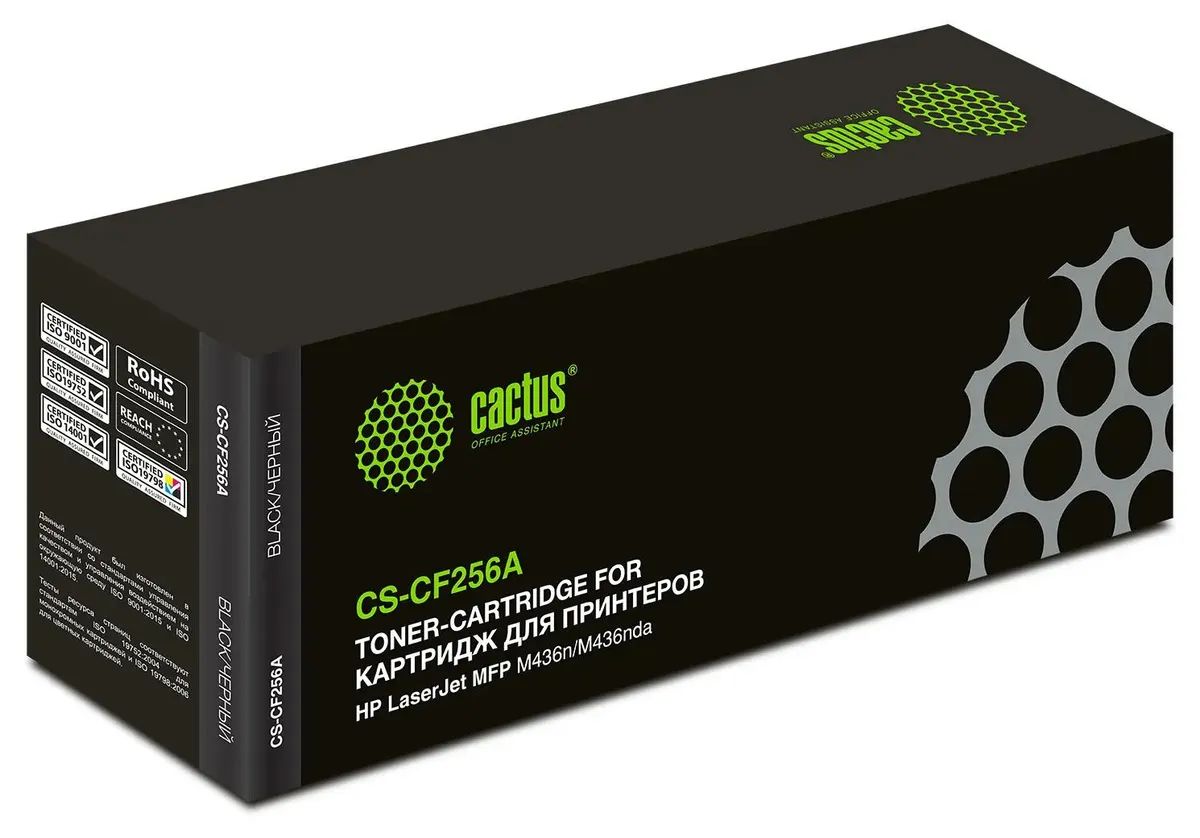 Используя картридж Cactus CS-CF256A у Вас будет возможность распечатать около 7'400 информационных страниц (при 5% заполнении).