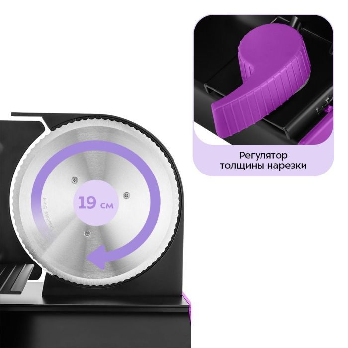 Ломтерезка предназначена для нарезки хлеба, овощей, фруктов, колбас, сыров и готового мяса. С её помощью можно быстро нарезать одинаковые ломтики для различных блюд. Тонкие слайсы не только выглядят аппетитно, но и делают любое блюдо более интересным! Мощность 220 Вт. Диаметр дискового ножа 19 см.