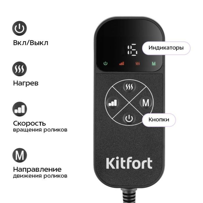 С помощью пульта управления КТ-5963 вы можете выбрать один из двух режимов массажа, настроить работу роликов и включить/выключить нагрев. Такое разнообразие настроек поможет подобрать наиболее комфортный и приятный массаж.