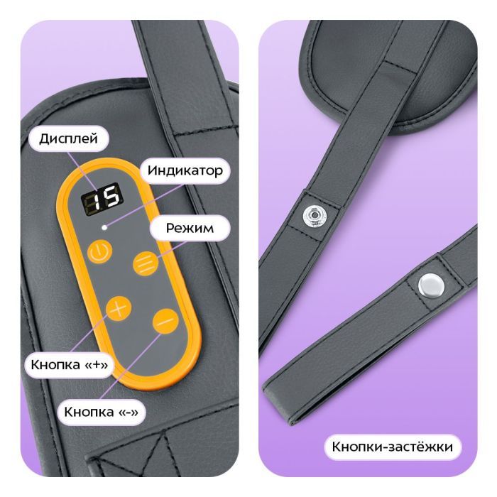 - При включении массажёр запускается в автоматическом режиме, а через 15 минут автоматически отключается. Кнопка «Режим» циклически переключает 39 режимов и автоматический режим. На дисплее во время массажа отображается оставшееся время работы.