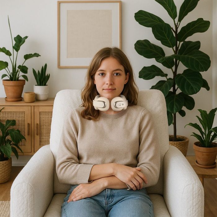 - Массажер оснащён голосовым сопровождением, озвучивающим команды при нажатии кнопок, низком заряде и выключении. Это полезно для людей с ограниченными возможностями зрения или для тех, кто хочет сосредоточиться на расслаблении.