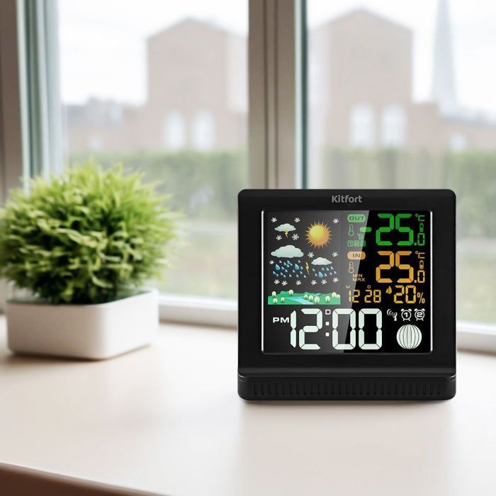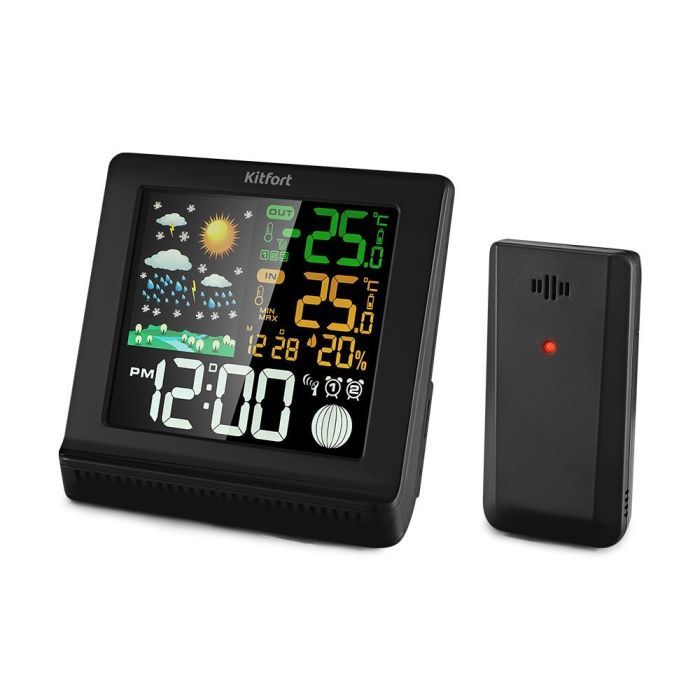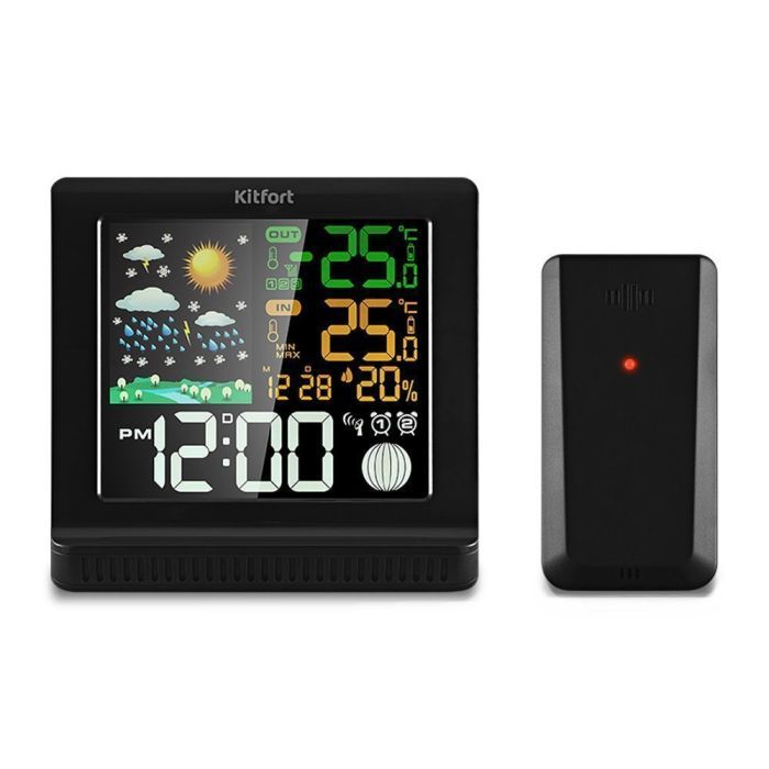 Метеостанция KT-3382 — это прибор, который позволит следить за показаниями температуры и влажности в помещении, температурой на улице, атмосферным давлением, а также фазой луны. Мощность 0,5 Вт.