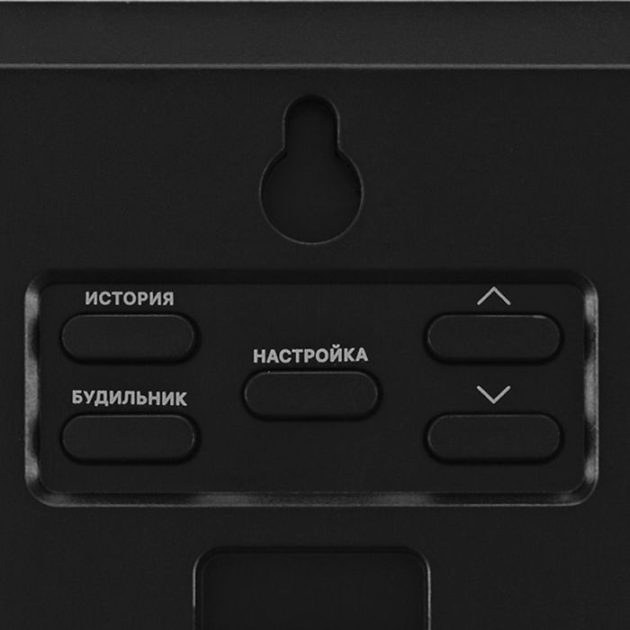 - Кнопкой «Настройка» перейдите к настройке времени будильников и текущих параметров. Кнопки «Больше» и «Меньше» изменяют значение настраиваемого параметра. Нажатие на кнопку «История» показывает максимальные и минимальные значения температуры и влажности.