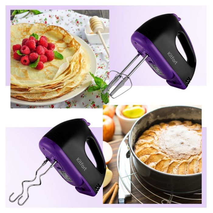 Ручной миксер Kitfort KT-3404 поможет вам смешать ингредиенты, взбить яичный белок или сливки, приготовить картофельное пюре, соус, крем, мусс, замесить жидкое тесто. В комплекте идут насадки для взбивания и перемешивания.