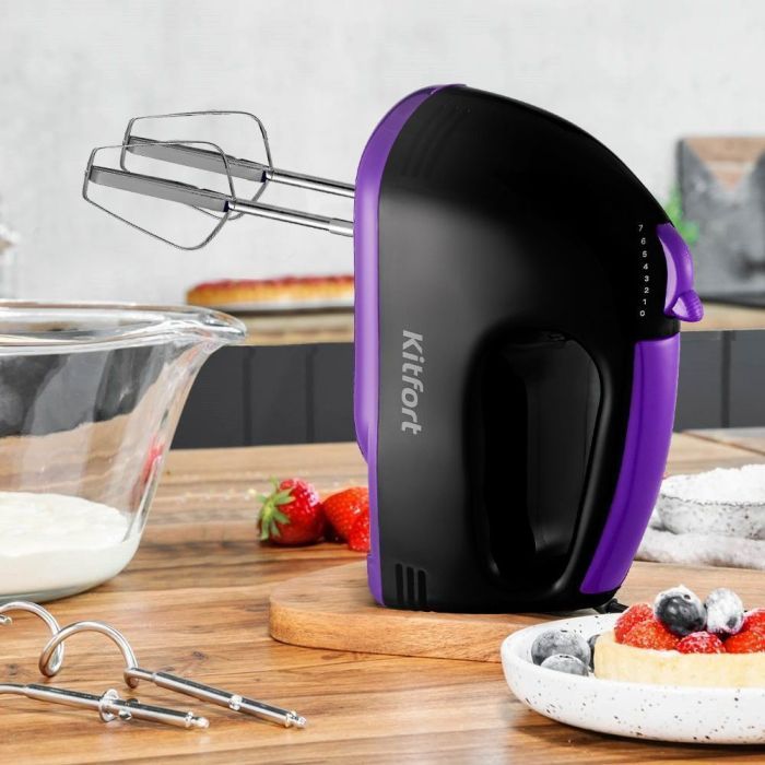 - Миксер оснащён 7 скоростями работы, благодаря чему вы сможете выбрать подходящую скорость для взбивания или смешивания ингредиентов.