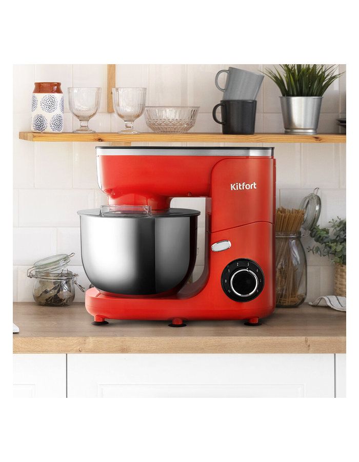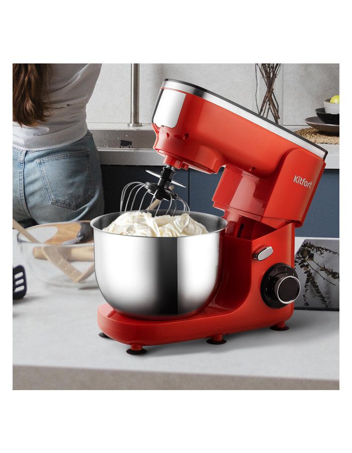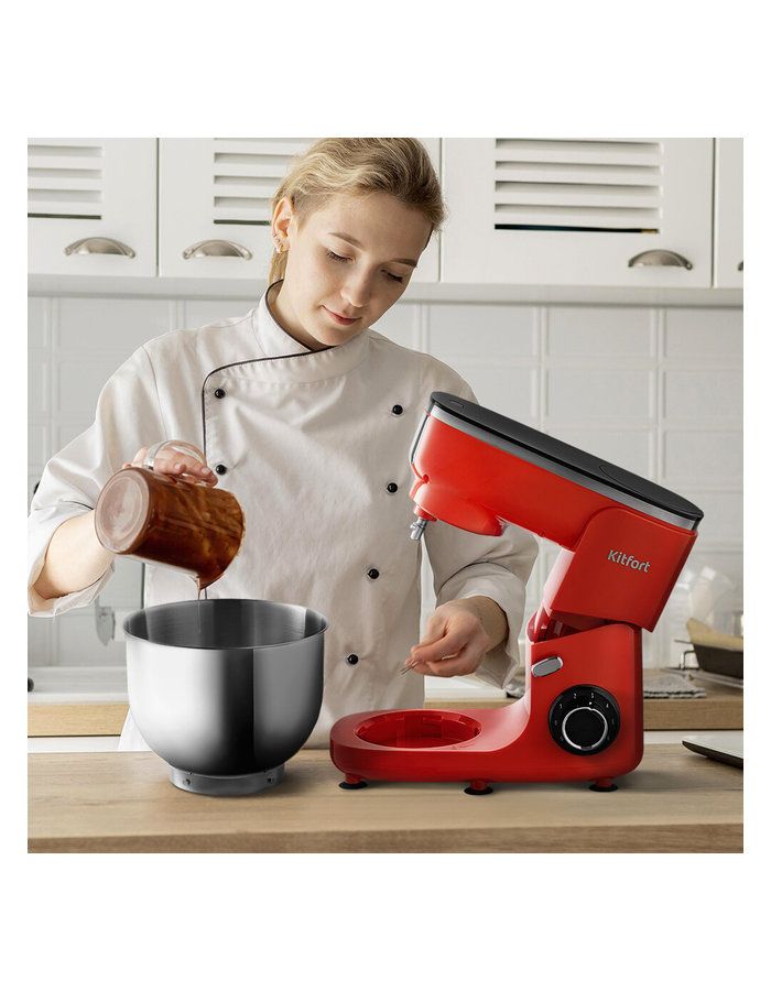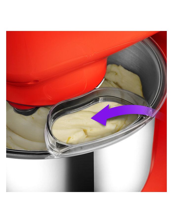 - Миксер оснащён планетарной системой смешивания: во время работы насадка вращается вокруг своей оси и одновременно движется по окружности по внутреннему объёму чаши. Это обеспечивает идеальное качество смешивания без комков.